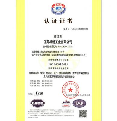 環(huán)境管理認證證書